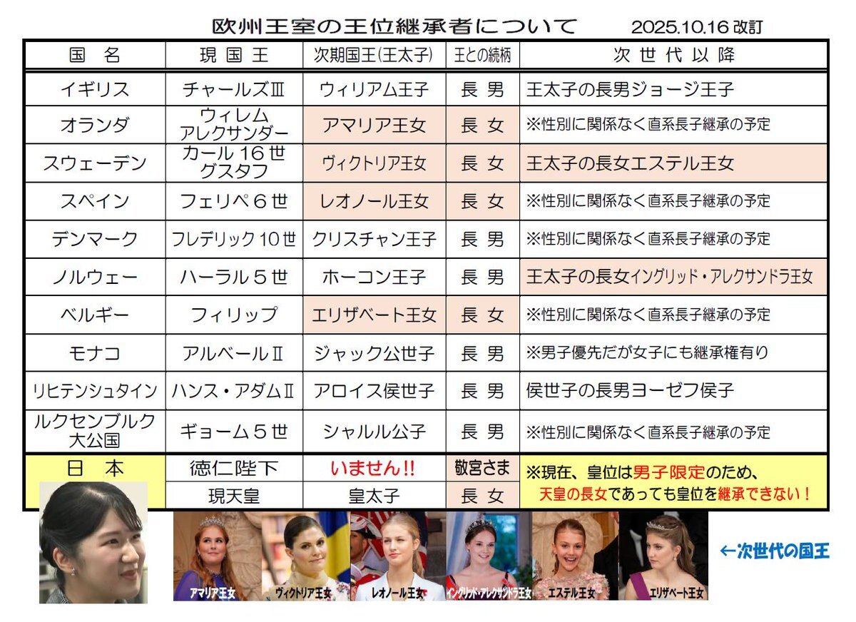 皇嗣家を避けて王太子が次々と戴冠する海外の王室! youtu.be/Lm8RHAL9jUE?si… #敬宮さま #愛子さま #秋篠宮 #紀子さん #悠仁さま #佳子さん #皇室典範改正 #秋篠宮家は日本の恥 #秋篠宮家に会計監査を #秋篠宮にDNA鑑定を #愛子天皇 #悠仁さん #敬宮愛子さまを皇太子に #秋篠宮家全員皇籍離脱 pic.x.com/4qVHcldKWa