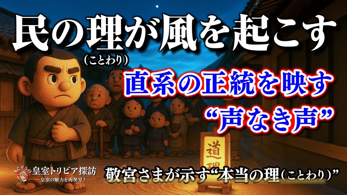 「理ってのは、上から教わるもんじゃねぇ。 自分の中に灯す火だ。 その火が消えねぇうちは、 まだ、この国は終わっちゃいねぇ。」──もぐぞう “理”を封じた制度の中で、 それでも灯り続ける「筋」を描きました。 ▶︎ youtu.be/PTeqdR2TueA #皇室 #敬宮さま #皇室典範改正 x.com/kawarabanmoguz…