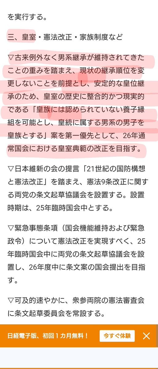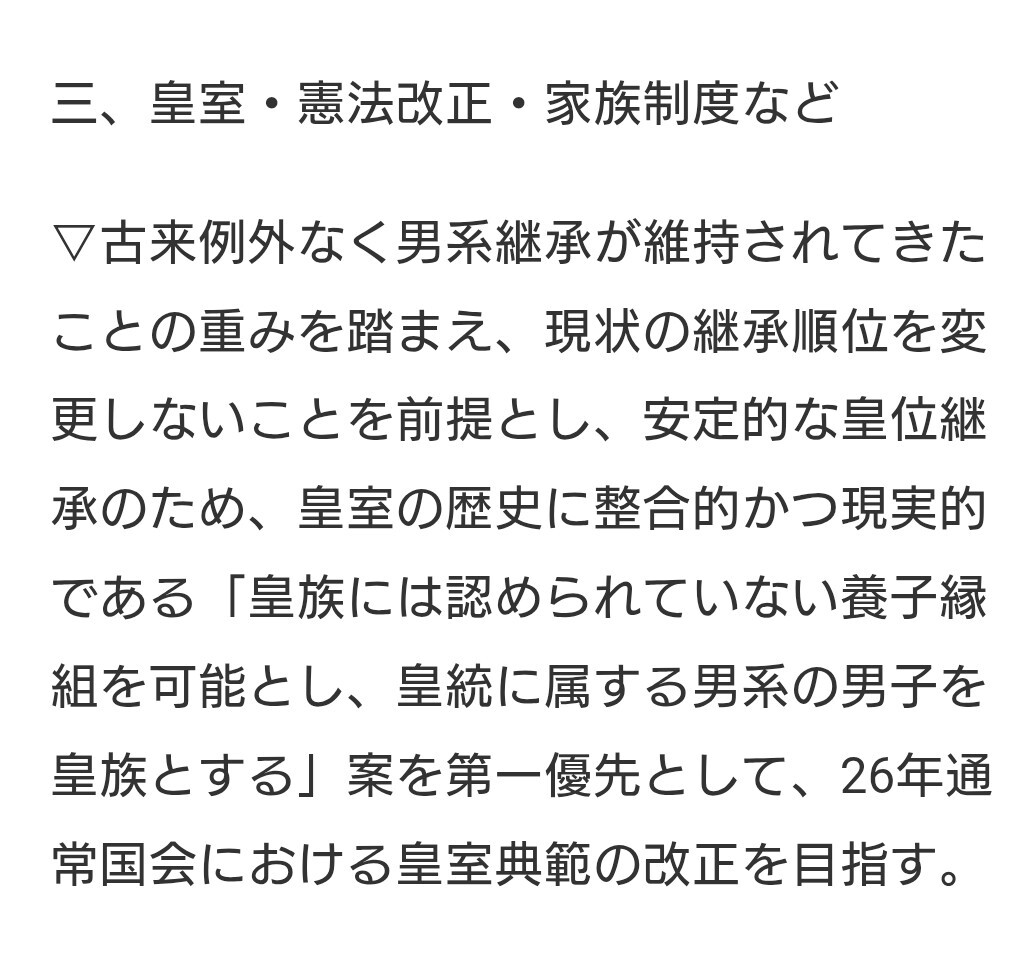 返信先:@utahime18自民党と日本維新の会の「連立政権合意書」に現状の継承順位を変更しないことを前提に、養子縁組を可能にし、皇統に属する男系男子を皇族にする、という旨の記載があります。直系長子の敬宮愛子殿下の皇位継承を女子を理由に認めていません。 #自民党維新の会連立政権合意書 #敬宮愛子殿下 pic.x.com/LYzmCz75gO