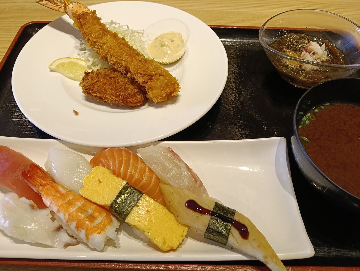 #文化の日 ですが、二ヶ月遅れの敬老の日ランチ☆ 身内と #魚忠 さんへ。揚げたての大きな海老フライ&鮭フライ🍤 に酢もずく&赤だしみそ汁。シャリ少なめの八貫も、ネタが分厚く大満足(⁠☆⁠▽⁠☆⁠) ごちそうさまでした〜😋 #文化の日 #魚忠 #敬老の日 pic.x.com/9Tv2pnOWmR