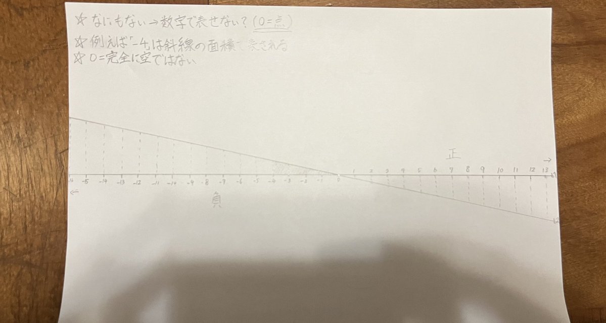 0ってほんとに数字なのかっていう違和感がパッと出てしまって 数を点ではなく面積で表せればいいのではと思った。 正と負は線の両側にあるだけで本質はおんなじ広がりで、0はただの交点になるから 特別扱いしなくてよくなるんじゃないか な? という学歴ない音楽する人の夜のぼやき #数学 pic.x.com/rPpjj0I1d9