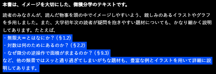 『これならわかる微積分学』 島 弘幸 著 定価3080 文字がびっしりになりがちな大学数学の参考書と比べて、視覚的に理解してもらおう、コラムなどでちょっと一息ついてもらおうと、「読者の快適さ」を考えた作りになっていたことです。 #数学 coronasha.co.jp/np/isbn/978433… pic.x.com/S1Y8yOYQ0L