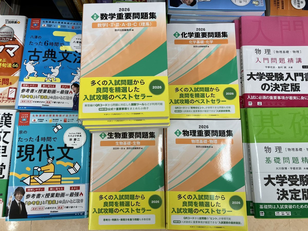 📚️新刊情報📚️ 数研出版 ★2026 実戦 重要問題集 ・数学Ⅰ·Ⅱ·Ⅲ·A·B·C(理系) ・化学基礎·化学 ・物理基礎·物理 ・生物基礎·生物 入荷いたしました!! #東松山 #進明堂 #数研出版 pic.x.com/OxqX39RMJ3