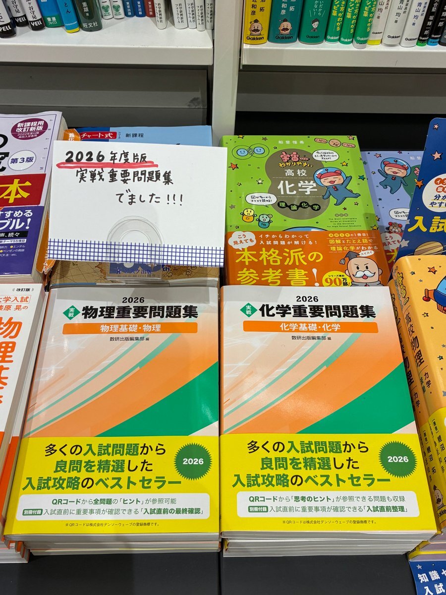 【学参】2026年バケジュウ・ブツジュウ発売🌟 『2026年実戦化学重要問題集』『同・物理問題集』入荷しました! 大学受験情報誌「蛍雪時代」11月号(併願特集)はラスト1冊となっております😐❣お早目にお買い求め下さい #数研出版 #旺文社 #蛍雪時代 pic.x.com/pvT3vq0nlx