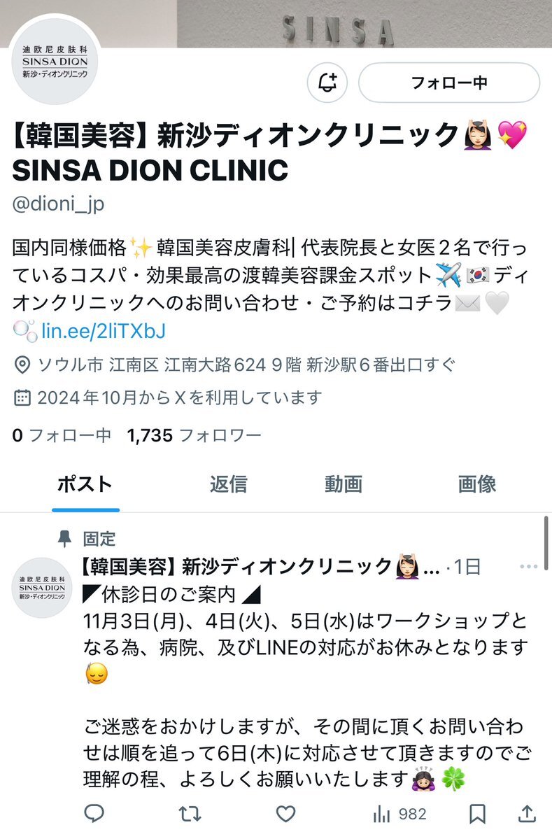 @dioni_jp ここのクリニック11月の渡韓で絶対行きたい🥹❕ 前回日本語対応スタッフさんいなかったから行けずに渡韓したけど、今月はいますように🥹💖 #韓国 #韓国渡韓 #韓国美容 #美容渡韓 #整形渡韓 pic.x.com/nLJGvJoeE6