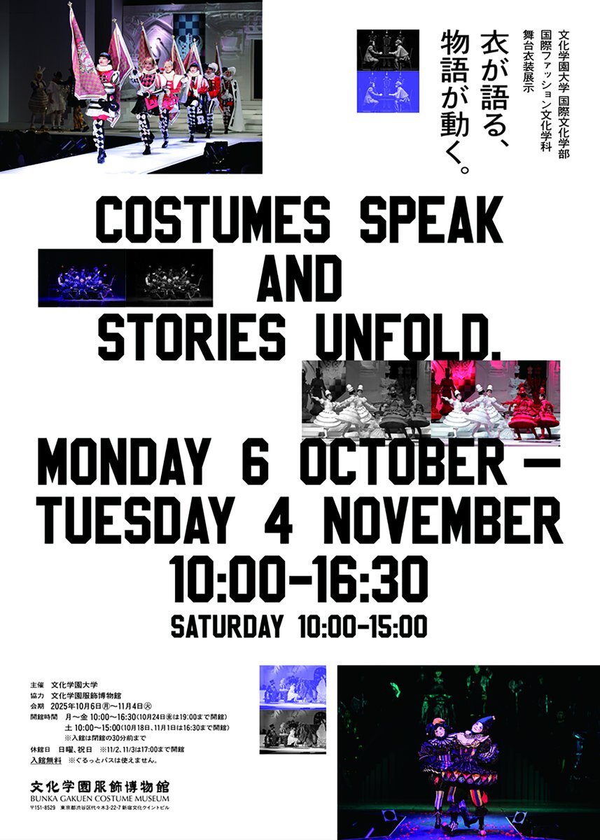 【2025年10月6日-11月4日】文化学園大学 国際文化学部 国際ファッション文化学科 舞台衣装展示「衣が語る、物語が動く。」を開催します(入館無料)。ぜひご覧ください。 #文化学園大学 #舞台衣装 pic.x.com/amGhugstob