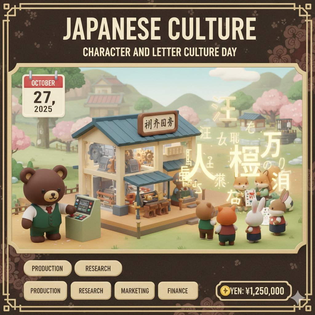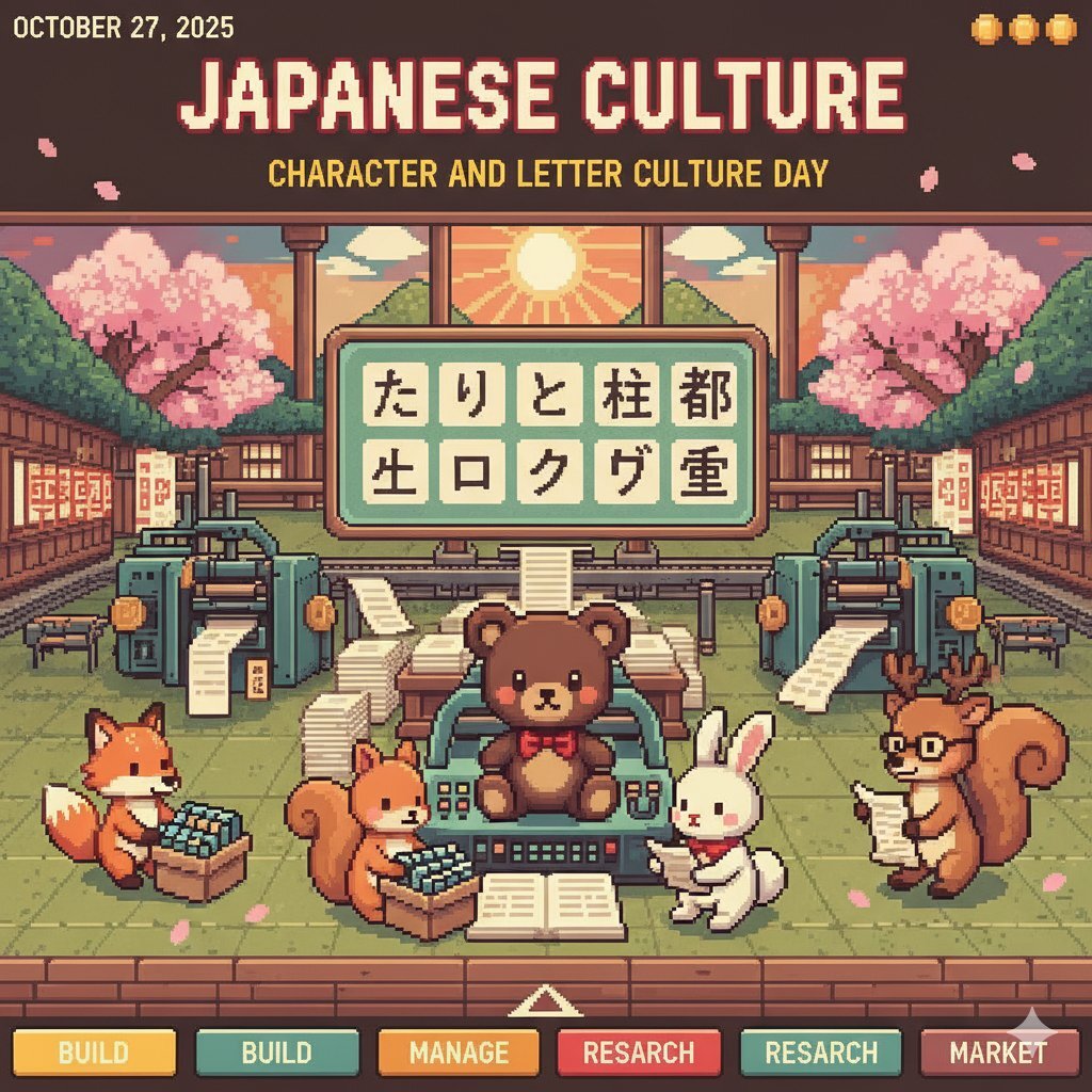 10/27は日本の #文字・活字文化の日 #文字・活字文化振興法 により制定 1. チームくま編 2. チームくま の印刷会社経営ゲーム 3DCG編 3. 同上 レトロゲーム編 4. ファッション編 #AIアート #AIイラスト #AIart pic.x.com/15UkZZtlTO