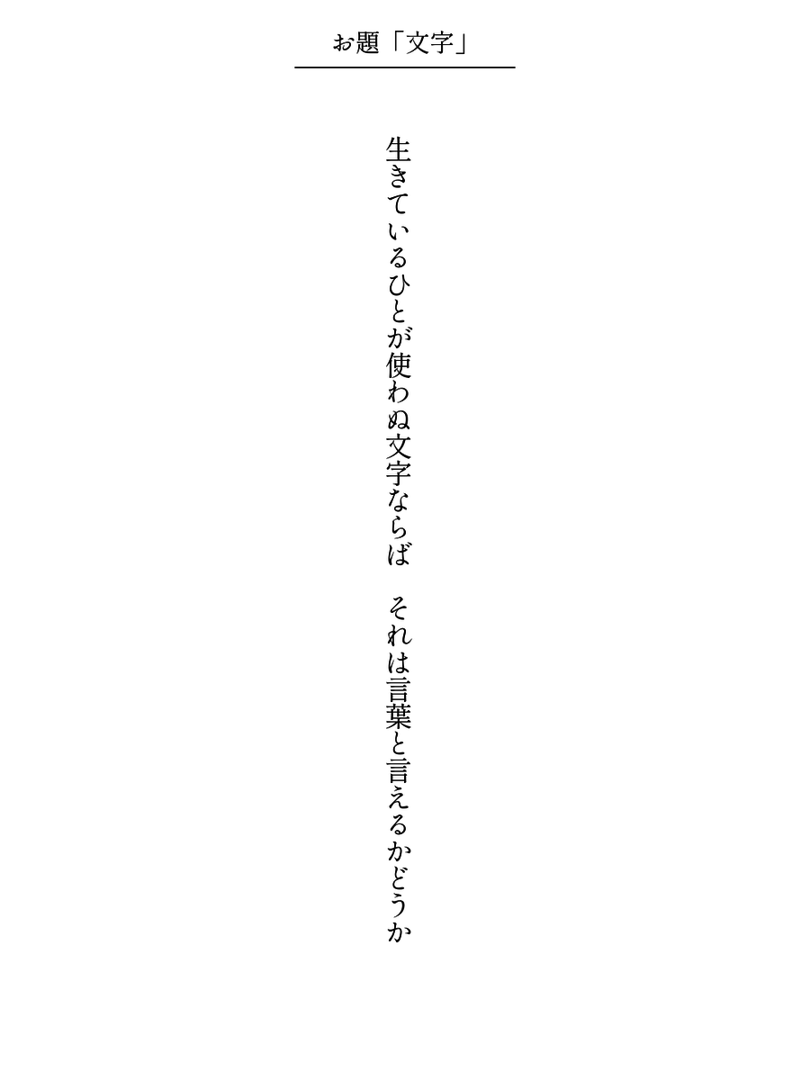 生きているひとが使わぬ文字ならば それは言葉と言えるかどうか #短歌 #文字・活字文化の日 #文字をテーマに短歌を作ろう pic.x.com/z7a9pbltP6 x.com/tankazine/stat…