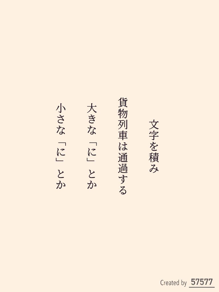 文字を積み 貨物列車は通過する 大きな「に」とか 小さな「に」とか /いっこう 🌟【短歌記念日】 テーマ「文字」 10月27日 文字・活字文化の日 #短歌 #文字・活字文化の日 #文字をテーマに短歌を作ろう #tanka pic.x.com/FRUJzi3ZAz x.com/tankazine/stat…