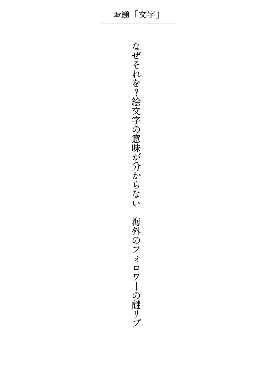 なぜそれを?絵文字の意味が分からない 海外のフォロワーの謎リプ / 土佐アヴァンチュールぱす汰 #短歌 #文字・活字文化の日 #文字をテーマに短歌を作ろう pic.x.com/3HgwXAhQQt x.com/tankazine/stat…