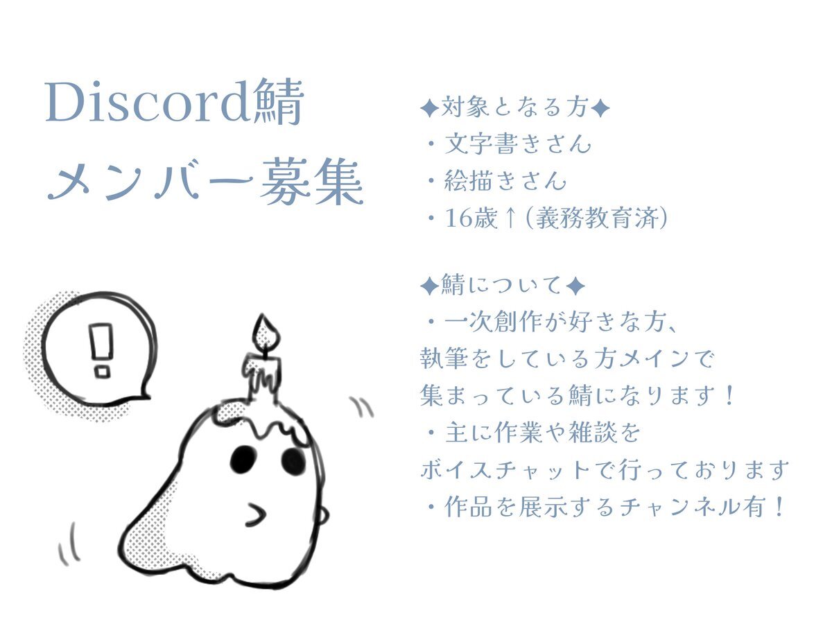 【Discord鯖メンバー募集】 ˗ˏˋ 文字・絵描きさんと仲良くなりたい ˎˊ˗ 一次創作が好きな文字書きさん、絵描きさんと交流を深めたいので鯖メンバーを募集いたします✑ ♡┃RP┃💬どれもゆっくり巡回させていただきます❕️ #discord鯖募集 #文字書きさんと繋がりたい #絵描きさんと繋がりたい pic.x.com/zznvAWjgox