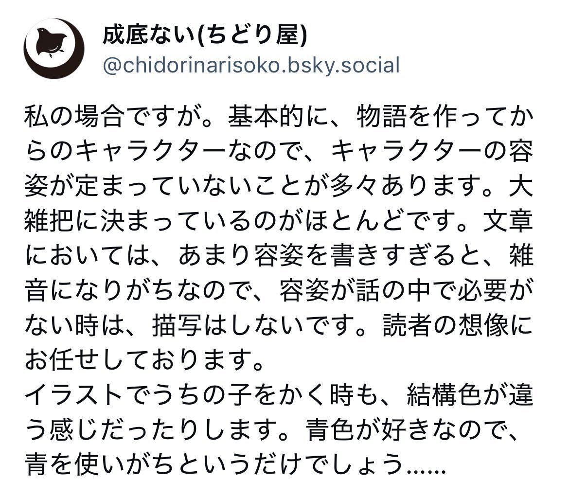 青空で語っていたこと。 あの、文字書きさんて……書きたいキャラクターの容姿とかをどこまで決めていますか?誰が教えてください。 #文字書きさんと繋がりたい pic.x.com/TqCtvlByiz