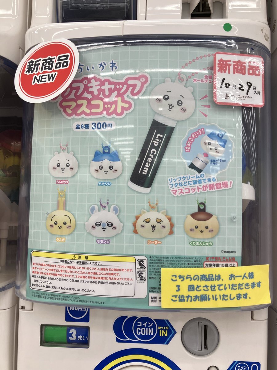 ✨新商品情報✨ 新商品入荷しております😊 ①#ちいかわ リップキャップマスコット 皆さまのご来店お待ちしております♪ ※人気作のため、お一人様3回までとさせていただきます。 #ガシャ活 #ガシャポン