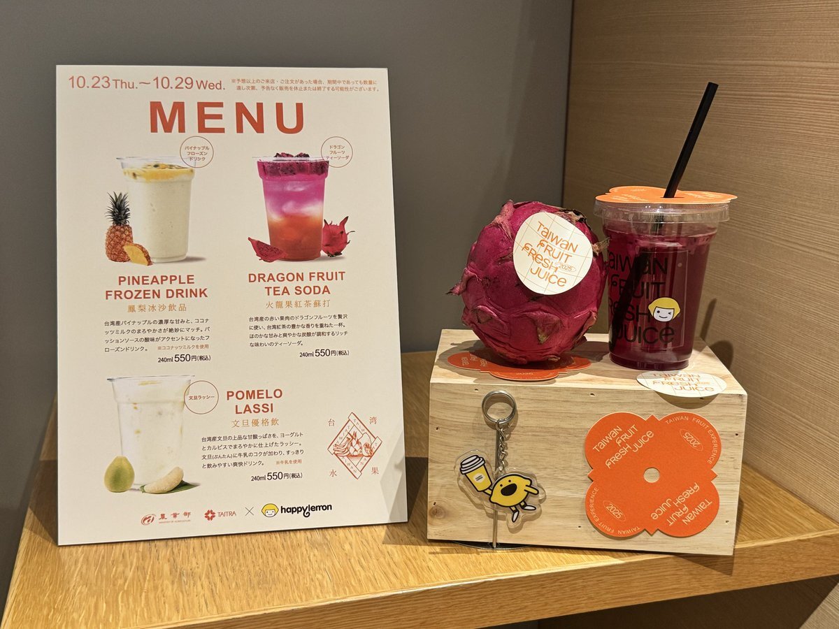 台湾フルーツジュースが数量限定!ドラゴンフルーツ、台湾文旦、パイナップルジュースを味わえるチャンスかも。 #台湾フルーツジュース #文旦 #ドラゴンフルーツ #HAPPYLEMON #台湾フード pic.x.com/UBnFkvL65a
