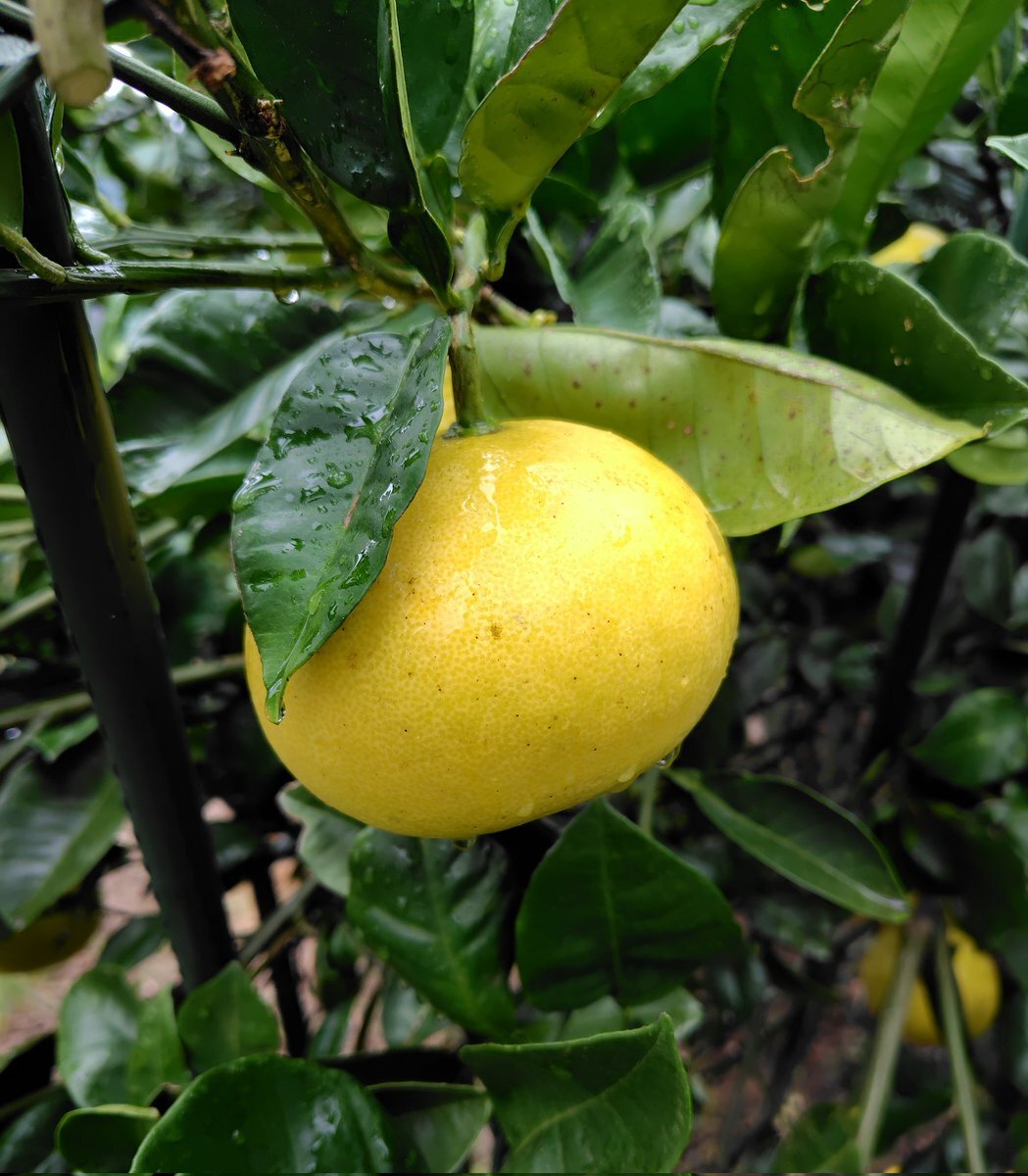 #おはようございます #令和7年11月2日 #日曜日 #ガーデニング #文旦 文旦が大きくなり、黃色く色づいてきました🍊 ぷーちゃんは、こじゃんと座りで毛繕いをしていました🐰 (今日は仕事です😆) pic.x.com/ltzr3A81Qz