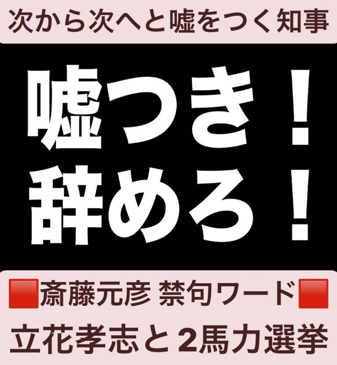 返信先:@motohikosaitoH🟥斎藤元彦は嘘つき🟥 全国知事会の提言に署名したんやろ? それやのに、その提言でいわれてた2馬力選挙が「いつ、誰の」選挙か答えられへんの何で? #斎藤元彦は知事失格 #斎藤元彦と立花孝志は2馬力選挙 #斎藤元彦は嘘八百