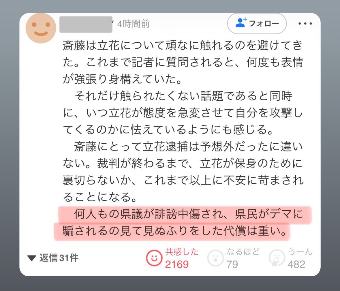 返信先:@motohikosaitoHいくら誤魔化してももう世間にバレてるから。 『共感した』が一番多いコメント教えとくわ #斎藤元彦は公益通報者保護法違反 #斎藤元彦は知事失格 #斎藤元彦と立花孝志は2馬力選挙 pic.x.com/dHNQtHNA2W