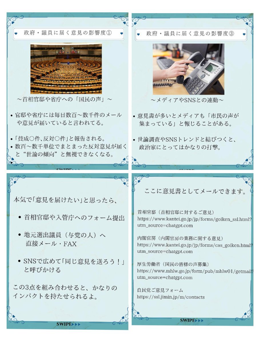#裏金問題 #意見 首相官邸等に意見を届けるのも良いかもしれません。 首相官邸意見フォー厶 kantei.go.jp/jp/forms/goike… 内閣府意見フォー厶 cao.go.jp/goiken.html 自民党意見フォー厶 ssl.jimin.jp/m/contacts x.com/yunishio/statu…
