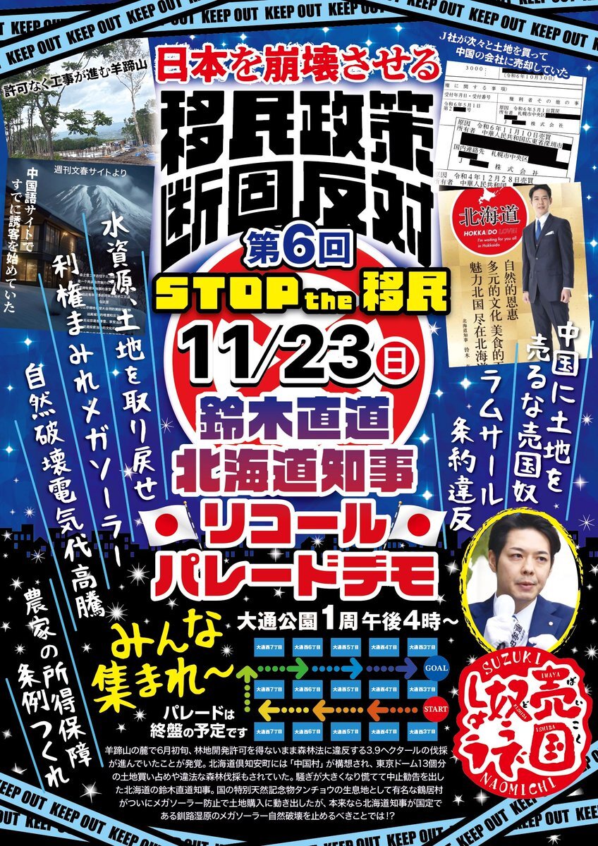 【拡散希望】 第六回 11/23(日) 移民政策断固反対 鈴木直道リコールパレードデモ #鈴木直道リコール x.com/usagidesyo/sta… #高市やめろ #斎藤元彦の逮捕まだですか #改憲発議阻止デモ #ヤバすぎる緊急事態条項
