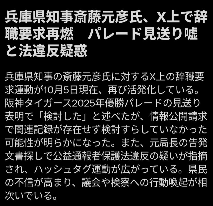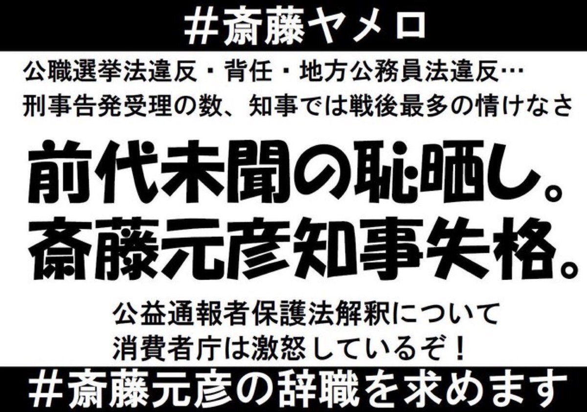 リレーお願いします。 斎藤辞めろ!! #斎藤知事の辞職を求めます #斎藤元彦は公益通報者保護法違反 #斎藤元彦は公職選挙法違反容疑 #斎藤元彦は地方公務員法違反容疑 #斎藤元彦は背任容疑 x.com/uIBsWxEYdt4023…