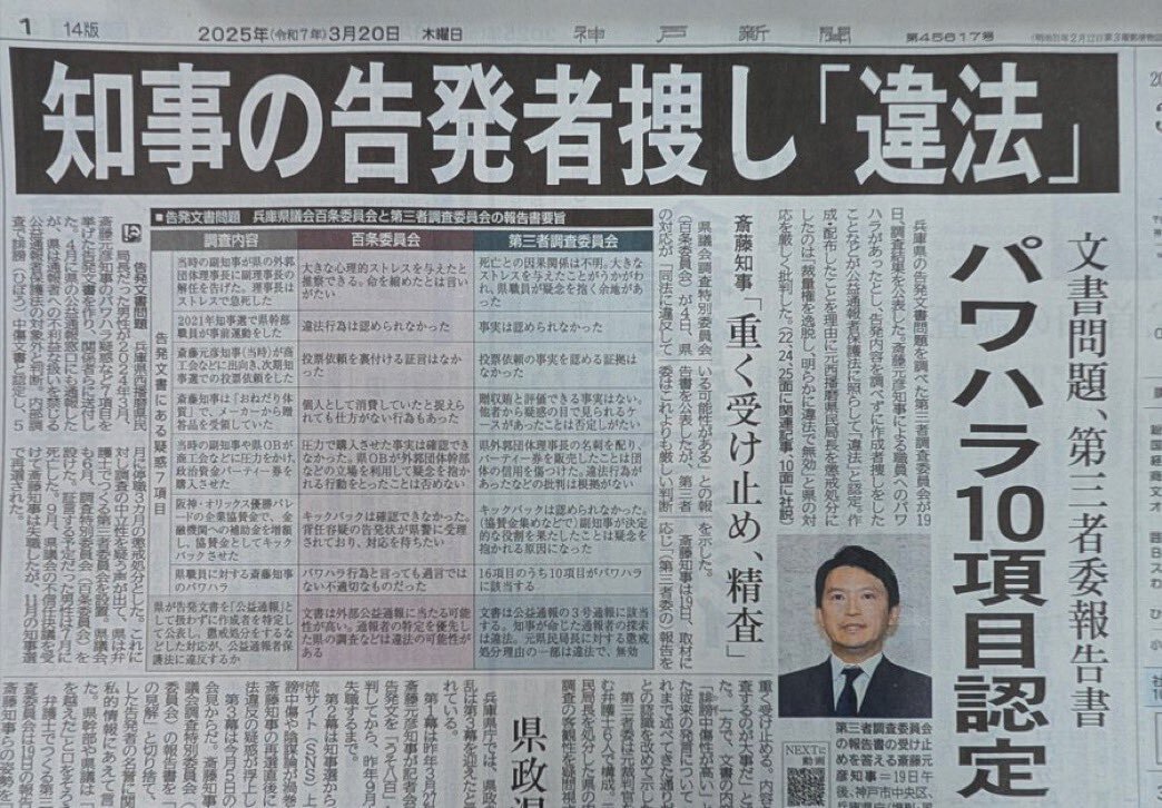 返信先:@motohikosaitoH給与減額条例案は見送りになるに決まっているでしょ。 第三者委員会に情報漏えいは知事の指示の可能性が高いと認定されたんだから、給与減額ではなく辞職一択しかありません。 で?いつ辞めるん💢 #斎藤元彦は地方公務員法違反容疑 (読売テレビ) - Yahoo!ニュース share.google/fozv12Glx4PwIE…