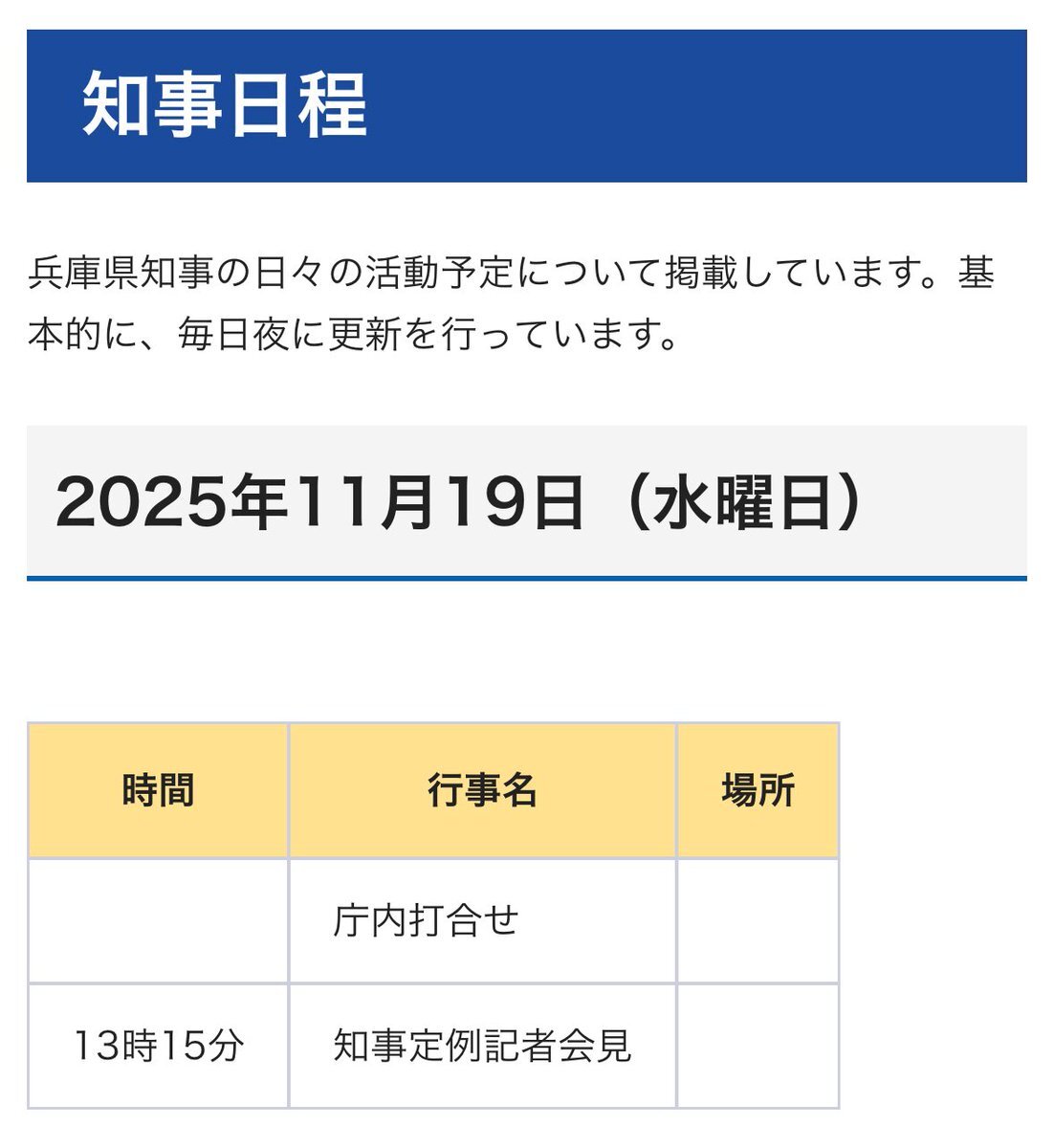 斎藤元彦の本日のご予定です。 ちなみに高知県知事の同じ日のご予定貼り付けます。 斎藤元彦は県政同様スカスカ。 pref.kochi.lg.jp/chiji/ugoki/20…