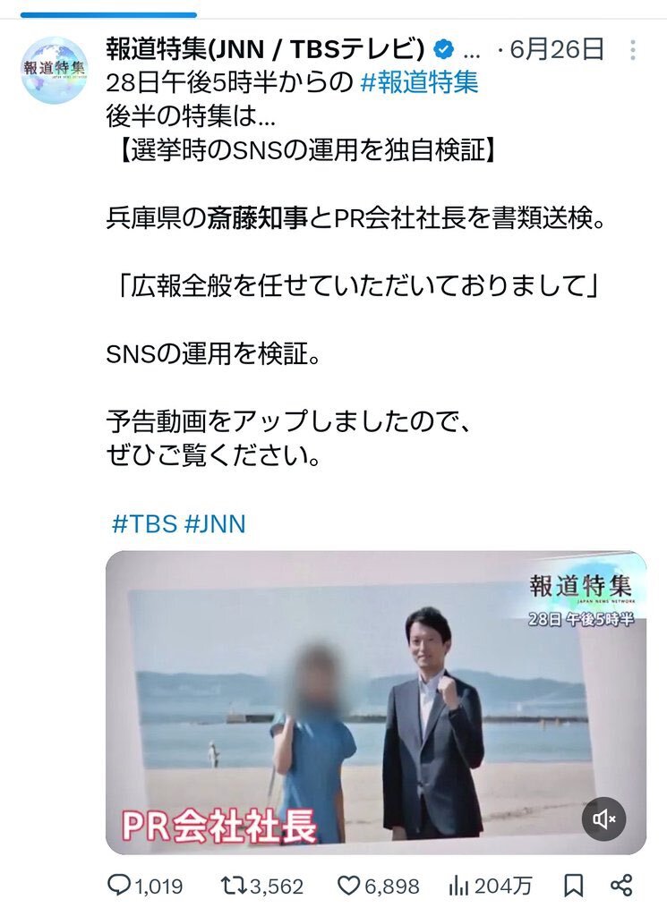 TBSの(偏向)報道特集が調査報道大賞??? 司法の判断で不起訴(これは無理がある)となった情報を大賞まで与えて垂れ流し続けるの?? TBSは兵庫を破壊する一翼を担っている自覚 ないからできるんですよね、こういうこと💢 わざわざ定例会見まで来て、本当に許せないです youtu.be/mztWuxjqQL0?si…