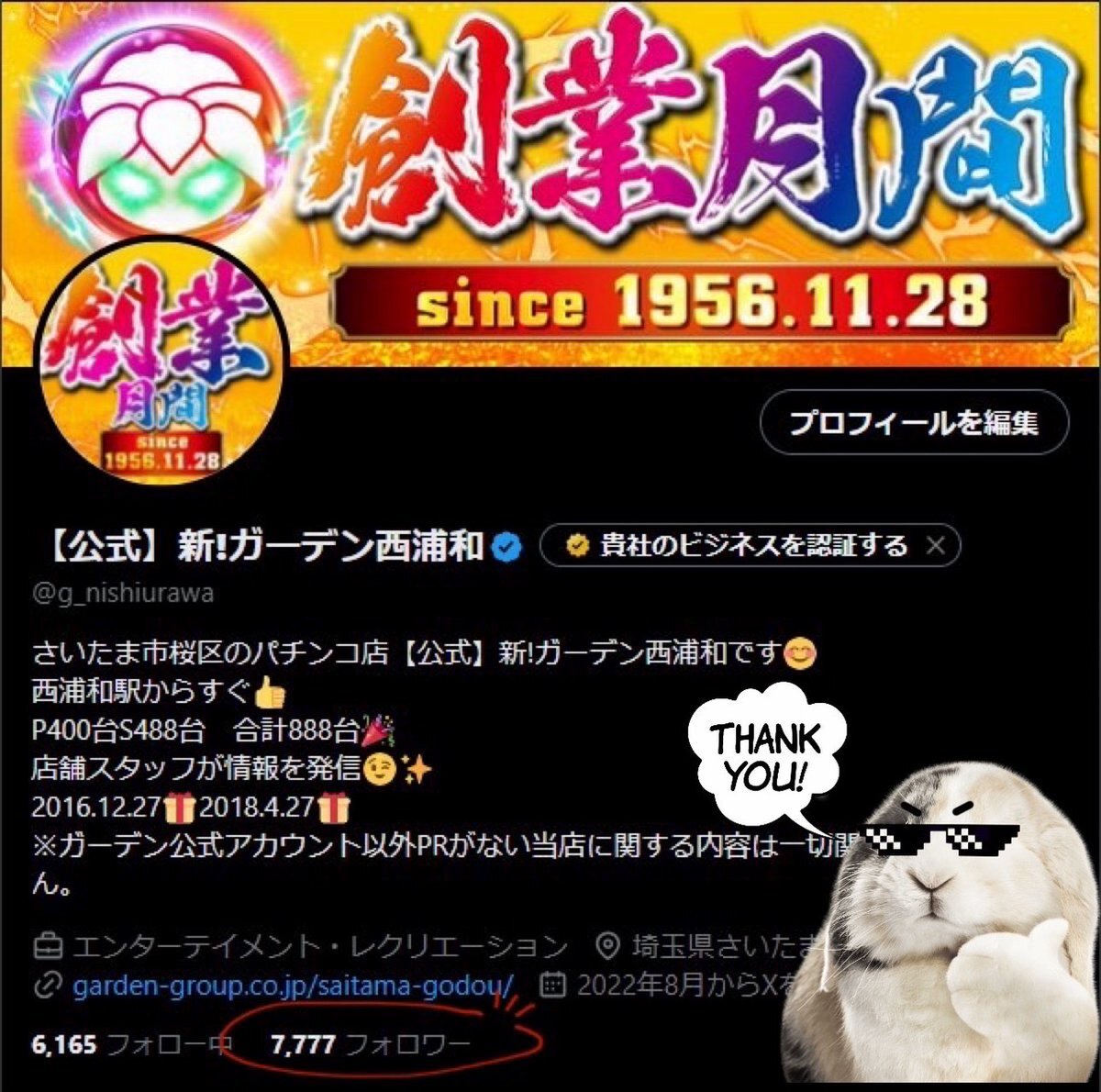 主任Hです🏄💭 明日11月17日(月) パチンコ館・10時OPEN予定🙌 今週のオススメ👍は… e牙狼&e東京喰種‼️ “原点“にして“頂点“ L革命機 #ヴァルヴレイヴ ⚡ #新ガーデン西浦和 は原点を大切に🫰✨ \そういえば/ 偶然お店のアカウントを見たら フォロワッサンが7,777名まで増🥐 pic.x.com/ZRdpOUhIiF