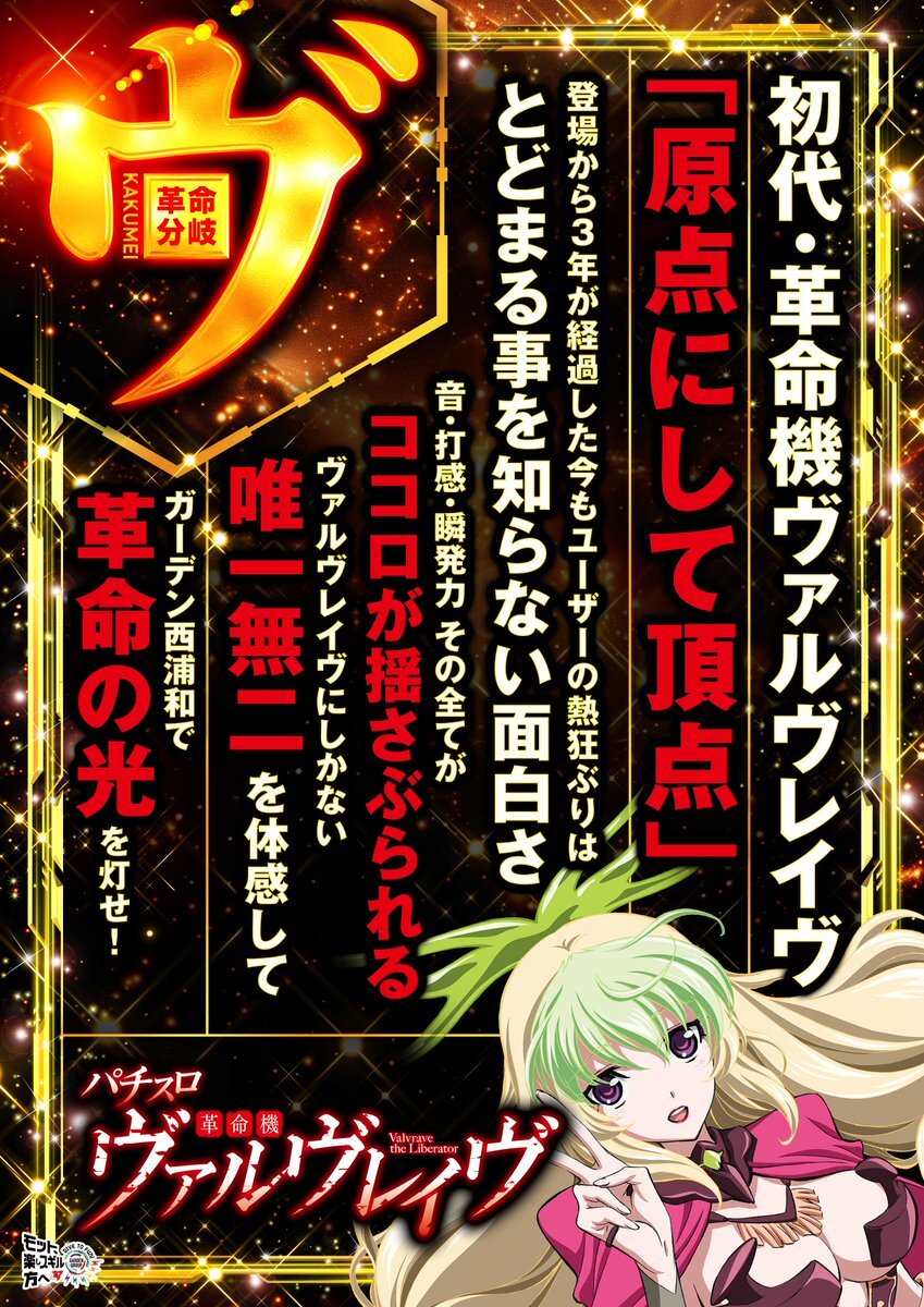 明日は1⃣1⃣月1⃣0⃣日㊊ 全館10時OPEN予定✨ 『ヴ』-革命分岐- 初代・革命機 #ヴァルヴレイヴ #新ガーデン西浦和 で 唯一無二の体感を✨ \👍オススメ機種も/ ▶▶画像をチェック👀 🏄♀️💭 来週からつっきーちゃんに加えて新メンバー? なんか色々始動!?詳細を待たれよ…🤔 pic.x.com/hKgc8CVsPV