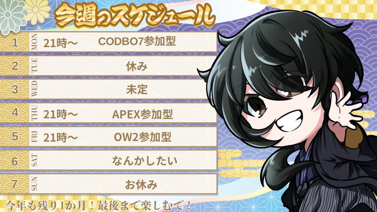 今週のスケジュールやで! 今回もFPS参加型多めでやって行くから遊びに来てや! 俺はみんなと喋って遊ぶんが大好きやから、これを機に仲良くなろか! #新人Vtuber #新人Vtuberを発掘せよ #新人Vtuberお探しですか pic.x.com/wyOpnVFiTu