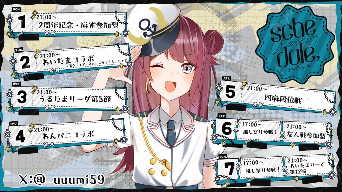 皆様おはうみ⚓️🫧 もう12月なのちゃんと許せない☺️☺️寒くなってきたので体調管理!!!他人事じゃないからね!一人一人体を大切に🪃 さて今週のスケジュールはこちら💁♀️推し祭り参戦があるので週末は2回行動かますよ!!!今週もよろしくね☺️♡ #おはようVtuber #新人Vtuberお探しですか pic.x.com/XB4d0hn1t6