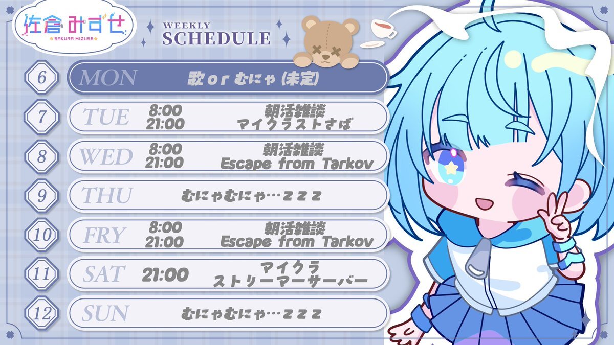 10/6~10/12の配信スケジュールですっ🎥 もしかしたら内容変更あるかも! よければチャンネル登録よろしくね🫶 ̖́- ✦Twitch twitch.tv/sakuramizuse ✦YouTube youtube.com/@SakuraMizuse #配信スケジュール #新人VTuber #Vtuber推し探しにどうぞ #この秋伸びるVtuber #新人Vtuberだって推されたい pic.x.com/Oh9RcZFHZR