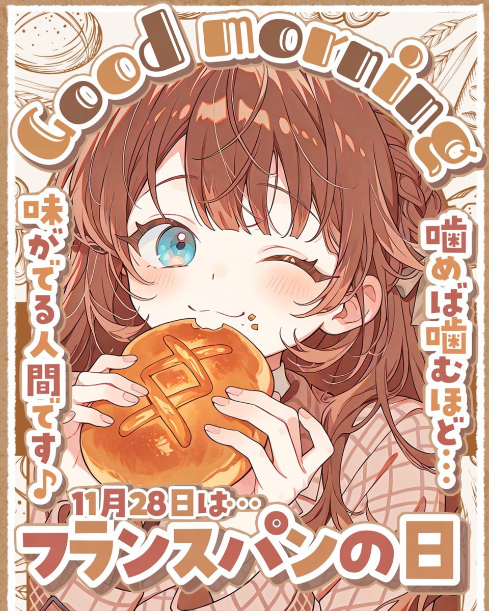 ˚.✧✨🍞 フリー素材 🍞✨✧. ˚ ⋰ 11月28日は #フランスパンの日 🥖🫧 ⋱ ⚠️いいね🩷&RT🔄両方で使用OK❕ 焼きたてフランスパンカラーです ⸜🤎⸝ #Vtuber素材 #おはようVtuber素材 #Vライバー素材 #IRIAM素材 #Vtuberフリー素材 #むにフリー素材