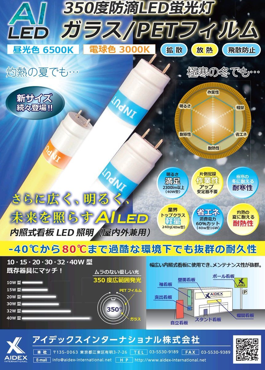 新商品紹介‼️ 展示会にも出展のアイデックス看板用LED蛍光灯から新たに10W型がラインナップ✨️ もちろんIP63防滴仕様💧 灼熱の夏🌞極寒の冬⛄にも耐える耐寒耐熱性‼️ 350度発光の広拡散発光でムラのない光を表現👍️ #サインアンドディスプレイショウ #LED蛍光灯 #看板 #サイン #LED #蛍光灯 #新商品 pic.x.com/hr5L1EpyB4