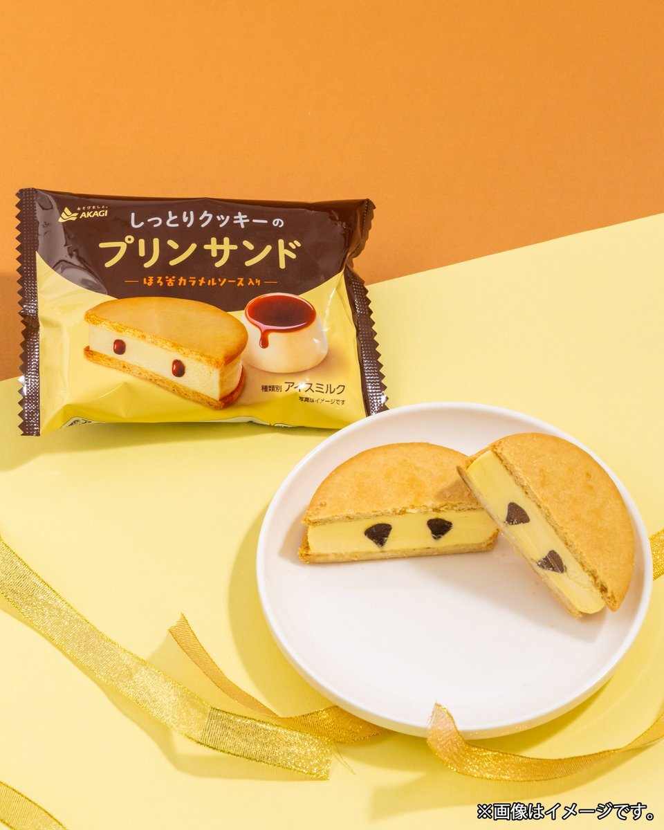 プリン好き、集合~~‼️ ほろ苦カラメルがとろっと溢れる🍮✨ しっとりクッキーで挟んだプリンアイス🍨 #新商品 #プリン pic.x.com/8o4mKuQ4pr