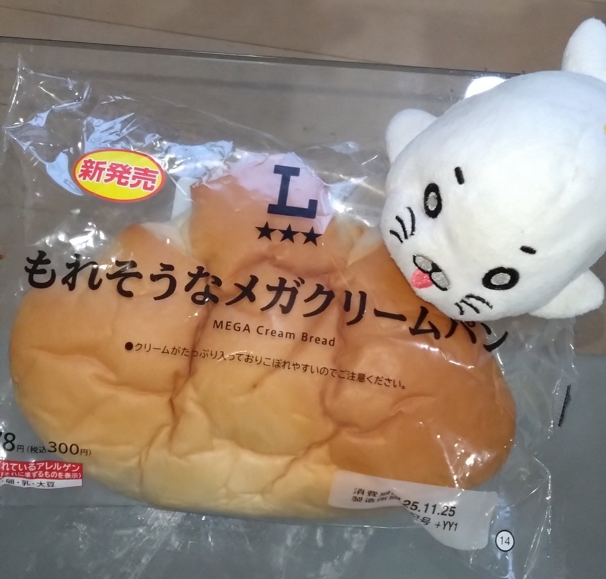 「もれそうなメガクリームパン 税込300円」 ずっしりとした重さのクリームパン。 ふんわりとした生地の中にカスタードクリームがたっぷり。 クリームはコクと適度な甘味のある王道の味。 #ローソン #もれそうなメガクリームパン #山崎製パン #ゴマちゃん #新商品 pic.x.com/ypo4ZRgmpY