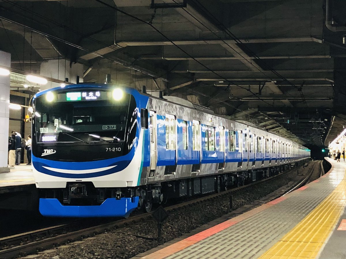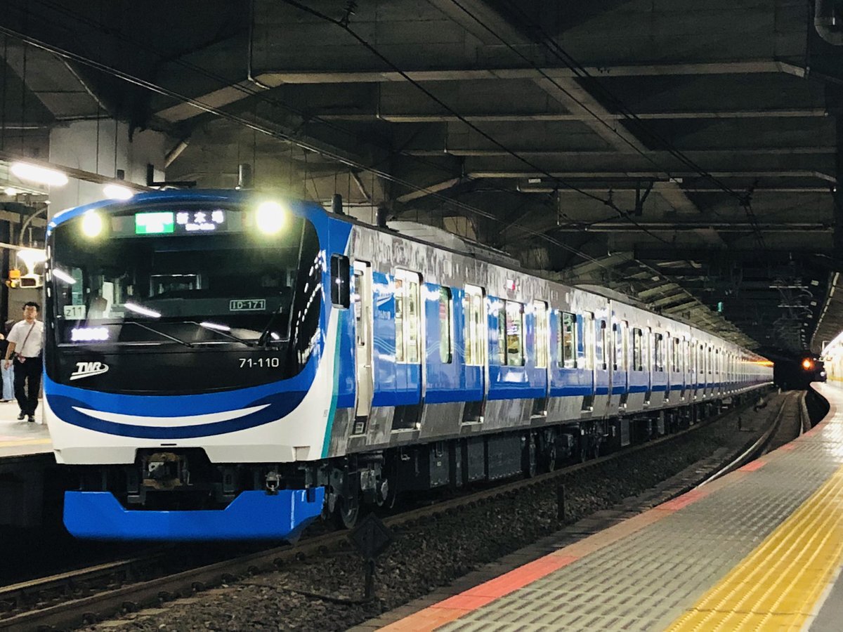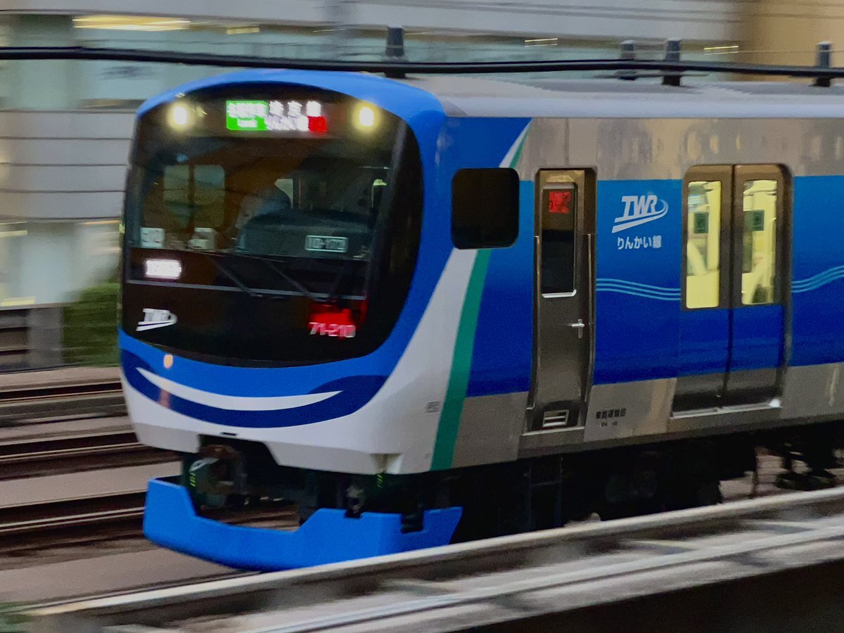 先日デビューした #りんかい線 #新型車両 71-000形 そろそろシゴオワで撮影するには暗すぎて無理がある 夕方に映えるブルーの爽やかさん。これは乗ってみたい pic.x.com/B3n65xyCP5