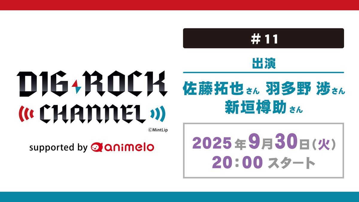 【DIG-ROCK】 / このあと20時より放送⚡️ \ ◤◢◤◢◤◢◤◢◤◢ 9/30(火)20:00📺 DIG-ROCK CHANNEL supported by animelo #11 ◤◢◤◢◤◢◤◢◤◢ ▼配信ページ live.nicovideo.jp/watch/lv348640… 【出演】 #羽多野渉 さん #佐藤拓也 さん #新垣樽助 さん #駒田航 さん #DIGch #ディグロ x.com/digrock_ml/sta…