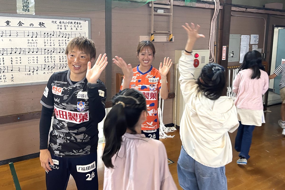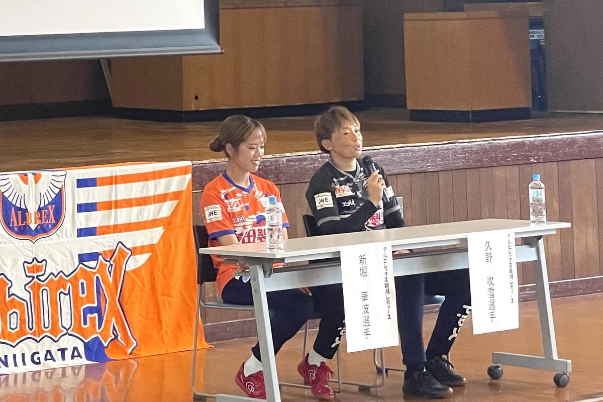 / 10/13(月祝)EL埼玉戦 1⃣0⃣0⃣0⃣0⃣人 #種まきプロジェクト 実施中🌱 \ #新潟市立女池小学校 に #新堀華波 選手と #久野吹雪 選手が訪問しました🏫 6年生対象にキャリア教育の授業を行わせていただき、夢を叶えるために努力したことなどをお話させていただきました☺