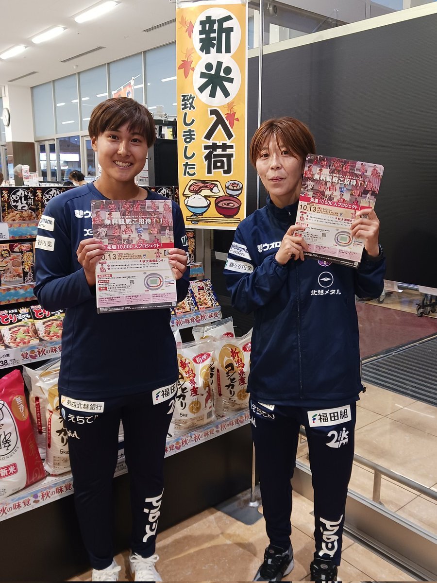 ✨目指せ、1万人プロジェクト✨ 本日 #アルビレックス新潟レディース の4選手が #ウオロク牡丹山店 と #ウオロク鳥屋野南店 にてチラシ配布を行いました!⚽🔥 チラシを受け取られた方もそうでない方も… 10/13(月・祝)はデンカビッグスワンスタジアムで #albirexL の勝利を後押ししましょう📣🏟️ x.com/albirexL/statu…