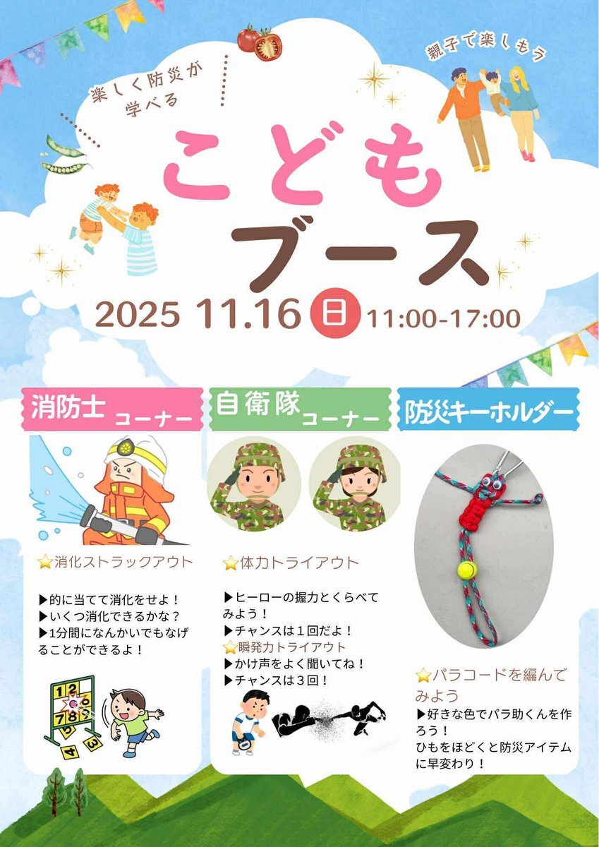 防災・防犯フェスでは、 楽しい企画が盛り沢山!! ぜひ、新宿歌舞伎町へお越しください✨ #新宿歌舞伎町 #なりきり体験子どもブース #パラコード #情熱クラブ x.com/osato84205311/…
