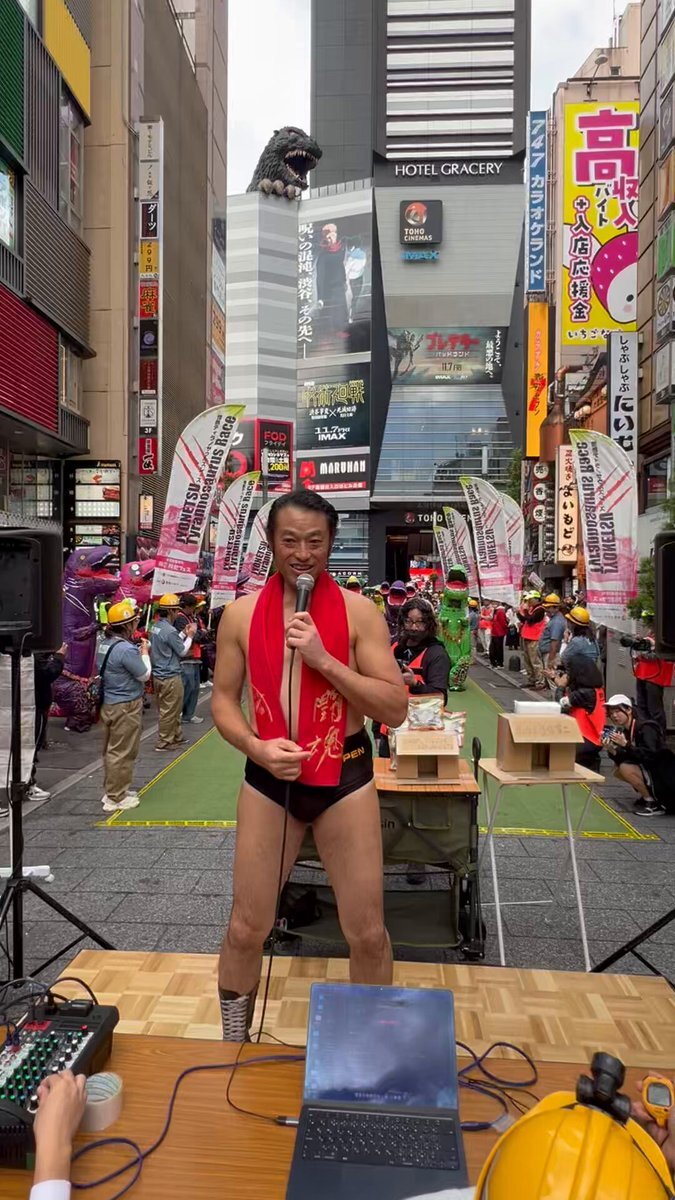 これが見たかったやつダァーーーーッ!!後ろでティラノさんがかすかに動いてる😆🦖 #アントキの猪木 さん最高ダァ❗️ #情熱クラブ #ティラノさんが転んだ #ティラノサウルスレース #ゴジラロード #新宿歌舞伎町 #防災 #防犯 x.com/SEKIELBERG/sta…