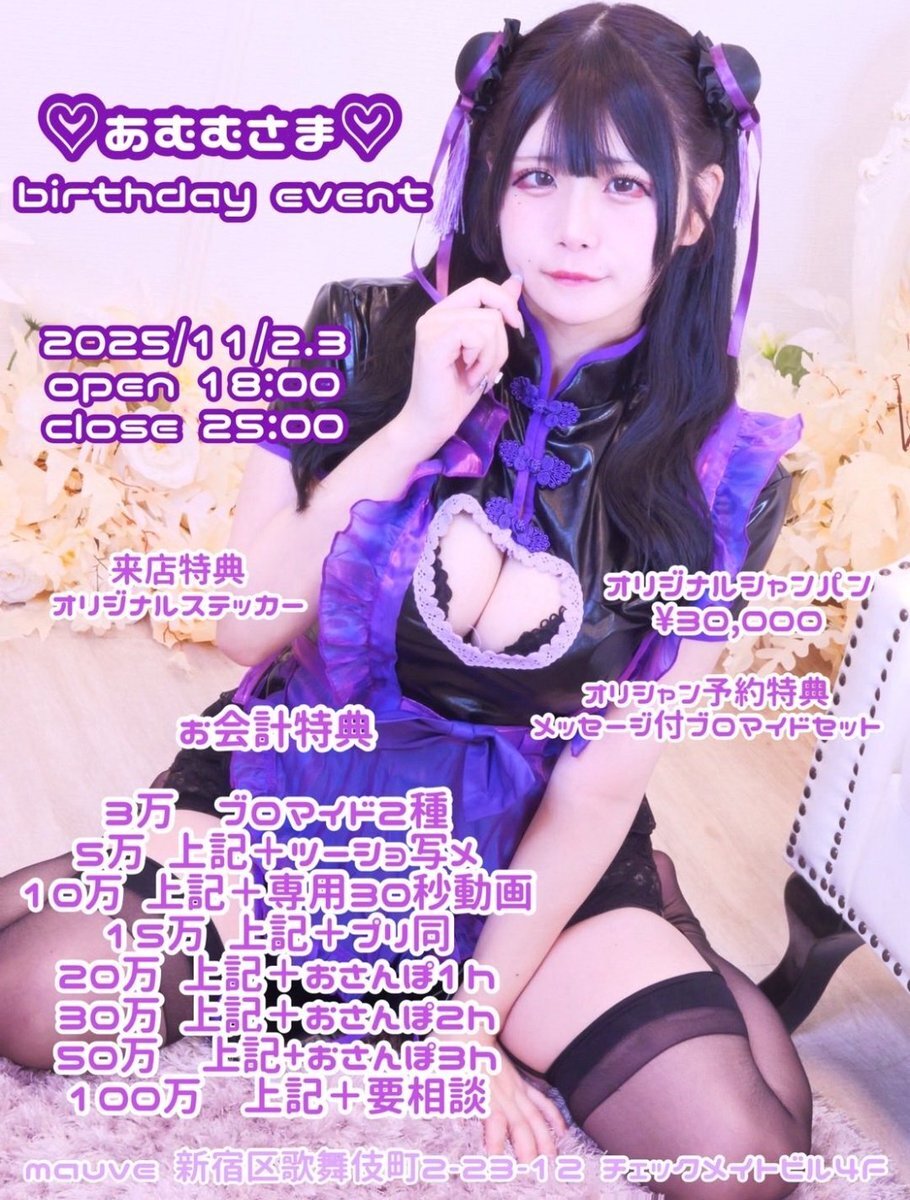 今日は新宿歌舞伎町のmauveであむむさんの生誕祭です。 キャストの皆さん、他のお客様と一緒にお祝いしてきます。 そういうわけですので、よろしくお願いします🙏🏻´- #あむちゃんいい子 #あむむ生誕祭2025 #mauve #新宿歌舞伎町コンカフェ pic.x.com/sRoRHnvFAu