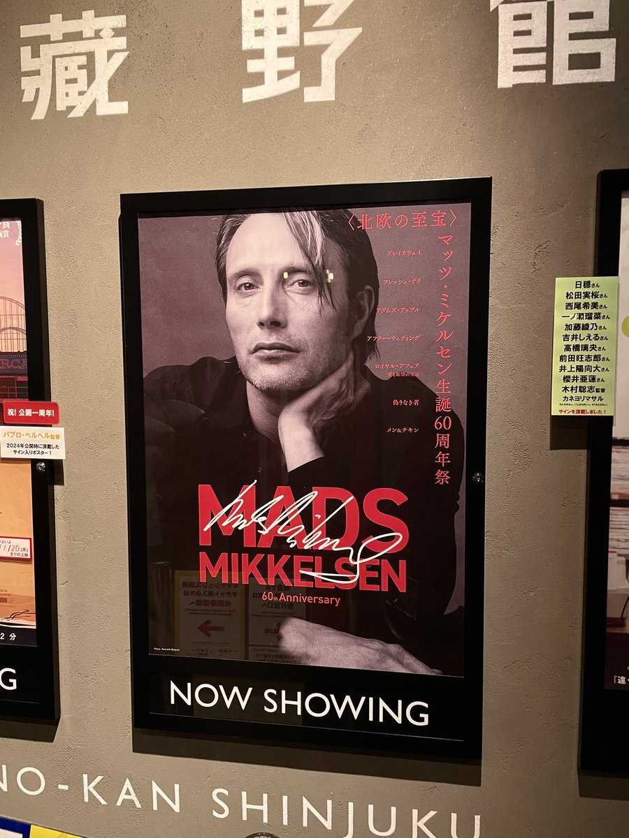 ストリーミングプラットフォームが一般的になってきて昔のミニシアター系の作品もだいぶ見やすくなったけど、時々こうして劇場にかけてくださると嬉しいですね。 #新宿武蔵野館 #マッツ・ミケルセン生誕60周年祭 pic.x.com/M5ev19qULn