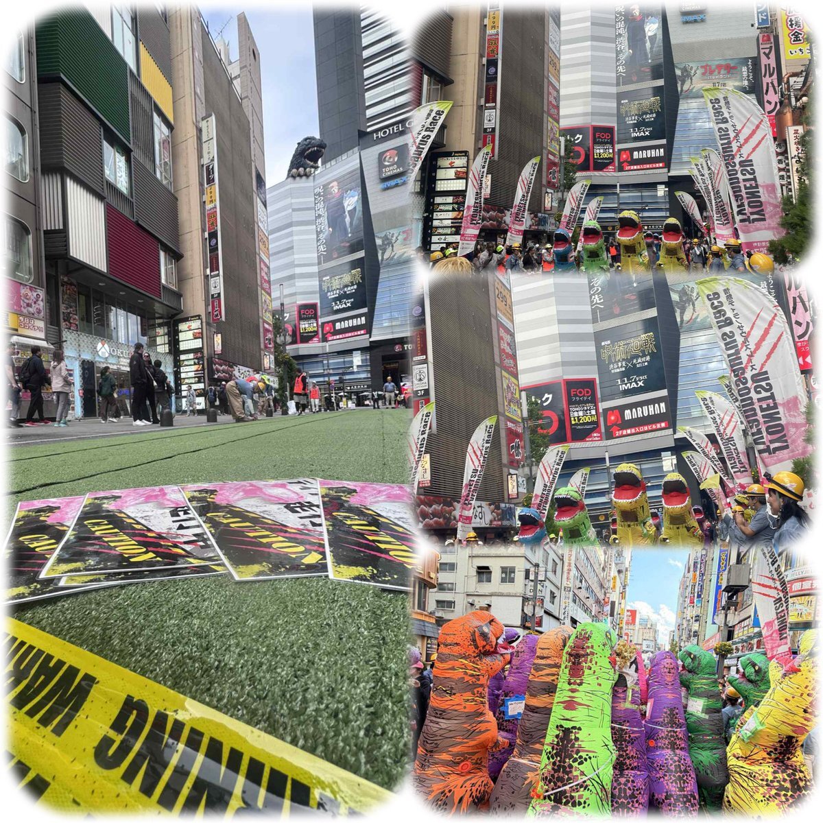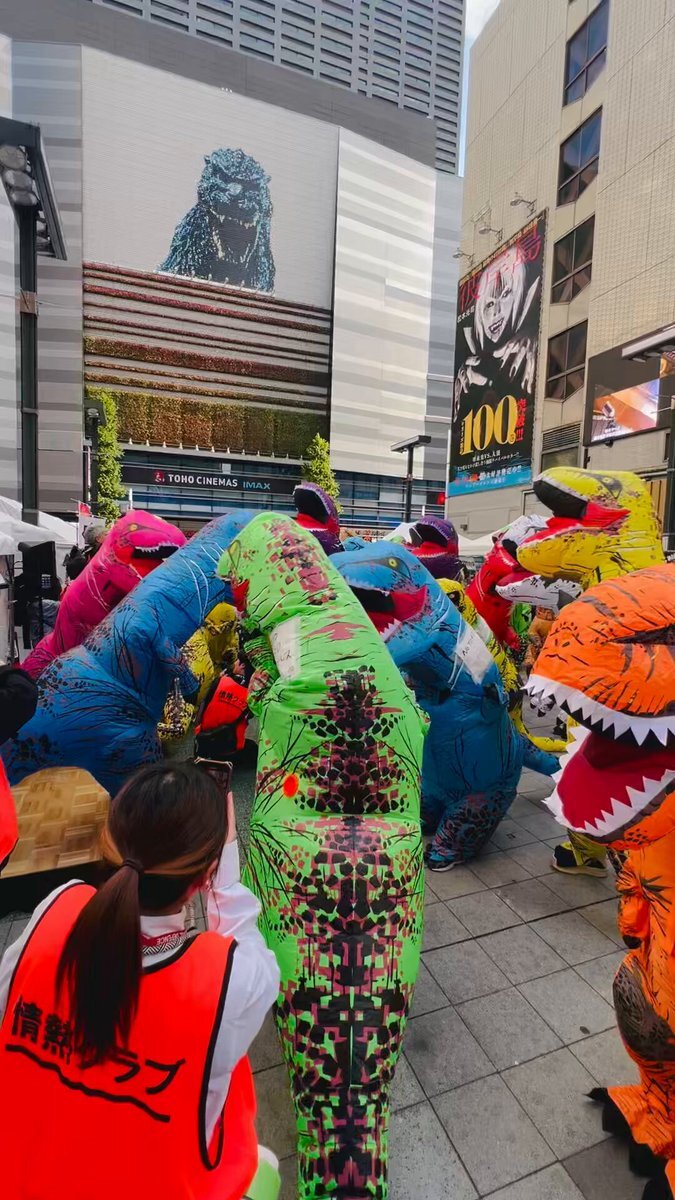 新宿歌舞伎町にティラノさんが集結🦖前代未聞のゴジラロードでのティラノサウルス(走らない)レース🦖🦖🦖💨 ティラノサウルスでも起震車の揺れには立っていられないようです💦 #情熱クラブ #新宿 #歌舞伎町 #関暁夫 #ティラノサウルスレース #防災 #新宿消防署 x.com/SEKIELBERG/sta…