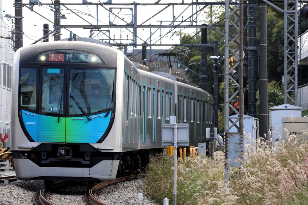 2025年11月08日(土) 11時10分通過 新宿線 花小金井駅~小平駅間 昭和病院横より 花4踏切付近 40000系40103編成 2317レ 急行 拝島駅行 #西武鉄道 #新宿線 #40000系 pic.x.com/5GvTIz06U2