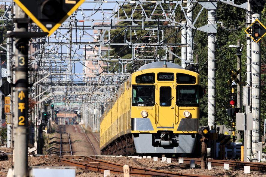 黄色い電車を追う 2025年11月17日(月) 11時03分通過 新宿線 小平駅~久米川駅間 小平2踏切付近 2000系2085編成 5627レ 各駅停車 本川越駅行 #西武鉄道 #新宿線 #2000系 pic.x.com/8CvANkmqiU