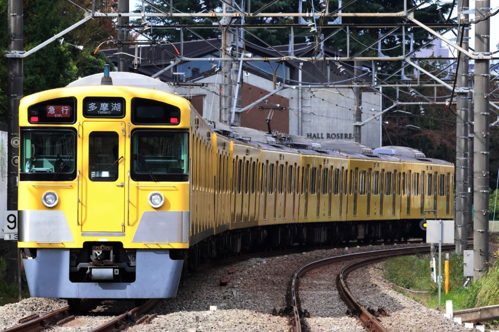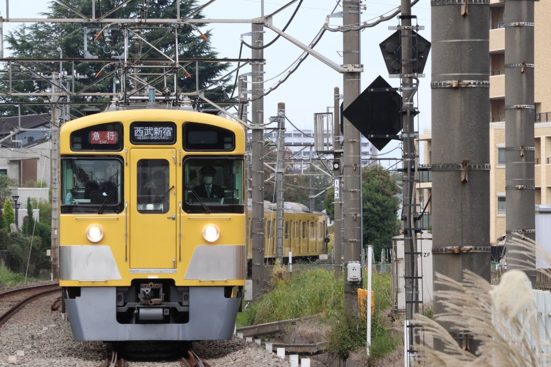 黄色い電車を追う 2025年11月17日(月) 11時21分通過 新宿線 小平駅~久米川駅間 小平2踏切付近 2000系2455編成(2輌)+2093編成(8輌) 2629レ 急行 本川越駅行 #西武鉄道 #新宿線 #2000系 pic.x.com/84TWmPKv8u