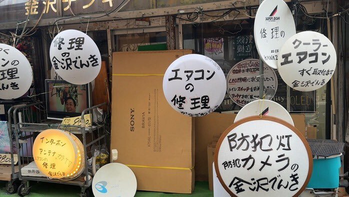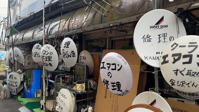 新小金井駅」から1分程の所にソニーショップ金沢電機があります ここの電気屋は使用済みのLEDシーリングライトのカバーに「エアコンの修理」「防犯灯・防犯カメラ」といった宣伝を書き込んで店頭に飾っている面白いお店です blog.livedoor.jp/fank10jasu/arc… #新小金井 #珍スポット #珍百景 #東京刺激クラブ pic.x.com/d61db6j5Yc