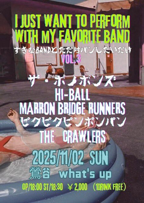 年内ザ・ボノボンズ告知! 新ロゴバッチ。先着でプレゼントします♪ ボノボンズは新体制でやる気満々。まだまだこれからやっちゃりますのでよろしくお願いします! どの日もご予約お待ちしています! 11月2日(日)鶯谷What’s UP 12月20日(土)新松戸 FIREBIRD 12月27日(土)千葉ANGA